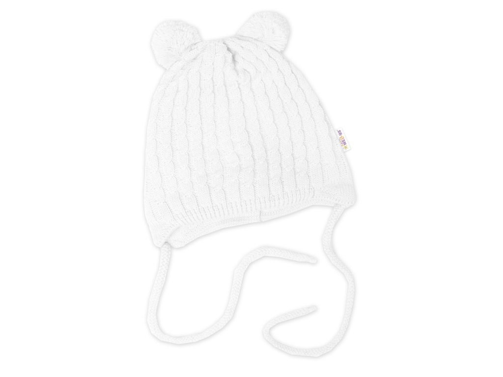 ZIMNÁ ČIAPKA NA ZAVÄZOVANIE S BRMBOLCAMI + ŠÁL, - Biela 74/80