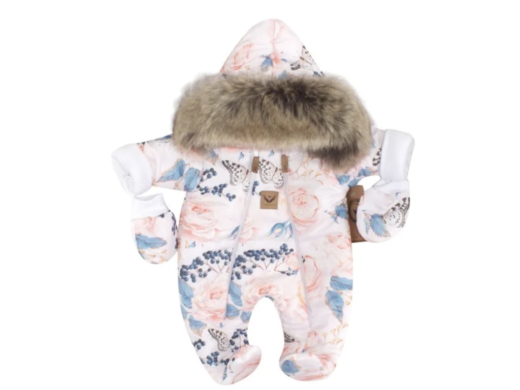 Zimná kombinéza s dvojitým zipsom, kapucňou + rukavičky, Z&Z Angel, ružičky
